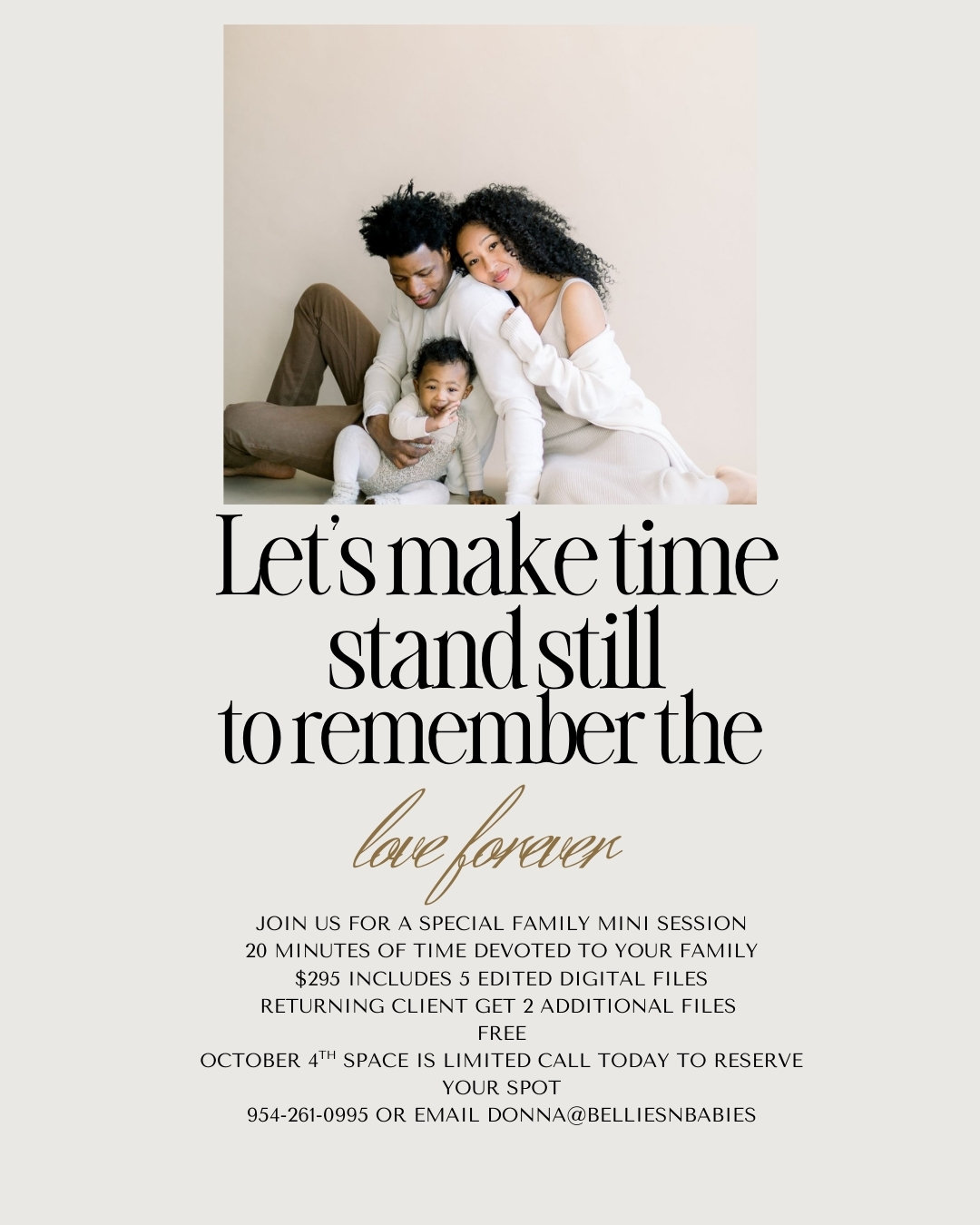 How to Book:Don't miss out on this amazing opportunity! To book your session, simply call or text us at 954-261-0995 leave a message Spread the Word!Share this special with your friends and family, and let’s create stunning portraits together! |